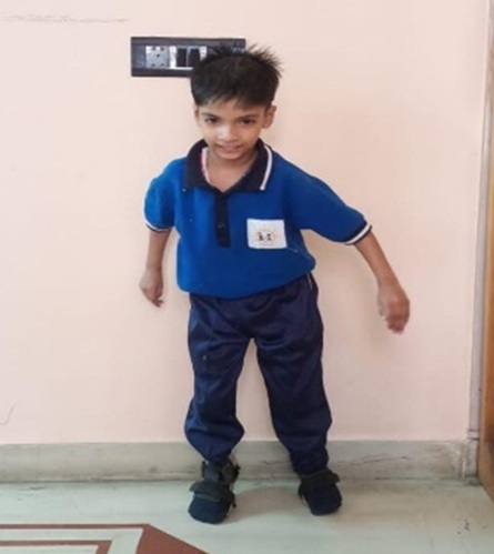 She has been undergoing physiotherapy, speech therapy and special education sessions. In speech therapy she practices blowing exercise, picture identification, cheek massage and lip exercises. In physiotherapy, she has stretching exercises to reduce muscle tightness and promote walking. Initially she practiced walking with a walker, and eventually progressed to practicing walking without the walker. In special education classes, she practices scribbling, tracing, and activities of daily living. In September 2024 she started taking a few steps by herself, and is now walking and playing ball with her friends. Drooling has also stopped, and she can speak a few words and express herself very well.